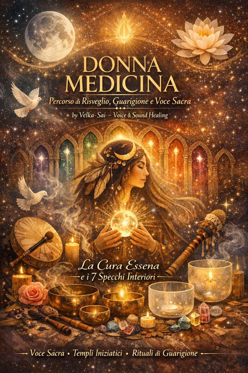 Donna Medicina è un cammino iniziatico dedicato alle donne che sentono il richiamo a ricordare chi sono, abitare il corpo come tempio e riconoscere la propria medicina. Un percorso di guarigione profonda che unisce voce, suono, respiro, ritualità e consapevolezza, intrecciando sciamanesimo e lavoro energetico, per trasformare ferite, risvegliare l’intuizione e incarnare una presenza femminile radicata, viva e sovrana.