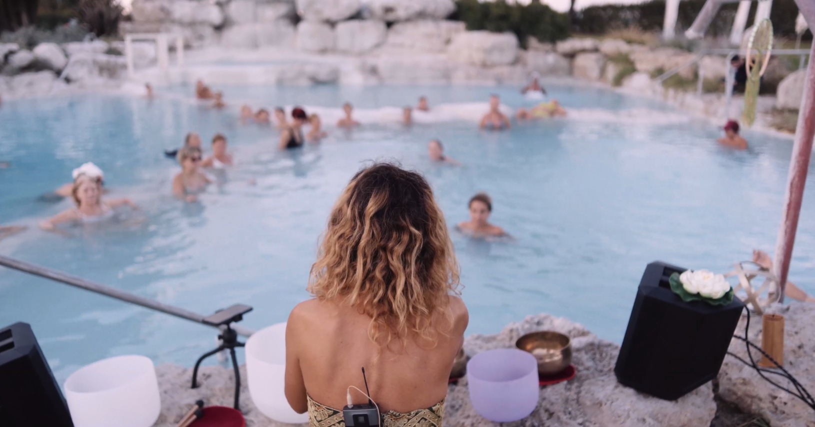 Ogni nota, ogni suono emesso, risuona nell’acqua e nel cuore di chi lo riceve, trasformando l’esperienza in una vera e propria immersione nelle energie curative della natura e dell’universo. In questo spazio sacro, il gruppo condivide un momento di serenità, equilibrio e rinascita, in cui il potere purificatore dell’acqua e il suono terapeutico si fondono per rigenerare profondamente ogni partecipante.