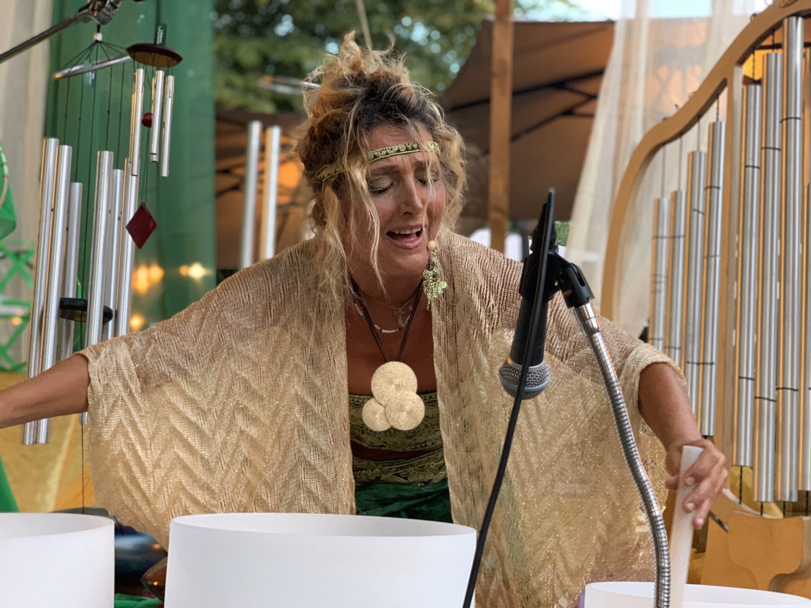 Partecipa attivamente al Festival dell’Oriente (in diverse tappe italiane), incantando il pubblico con la sua voce e offrendo il Trattamento Individuale LE CHAR D’APOLLON. I suoi concerti, spettacoli alchemici interattivi e trattamenti personalizzati offrono rigenerazione e vitalità.
